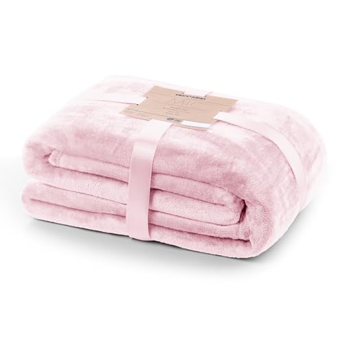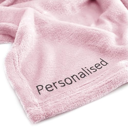 DecoKing Personalisierte Kuscheldecke 220×240 cm Rosa Decke mit Namen Bestickt Microfaser Tagesdecke Fleece Mic