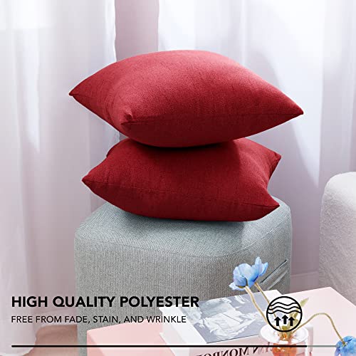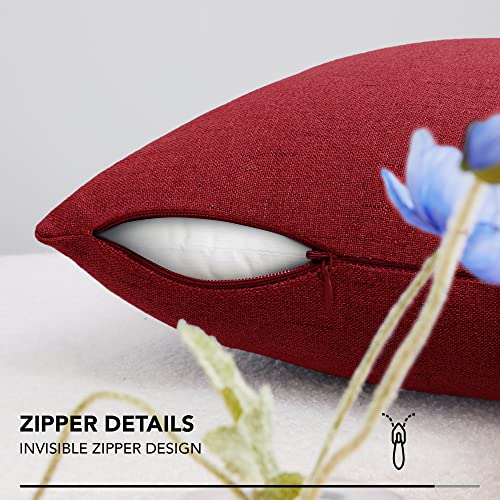 Deconovo Kissenbezüge Leinen Optik Kissenhülle Sofa Dekokissen Kissenüberzug, 40×40 cm, Rot, 4er Set