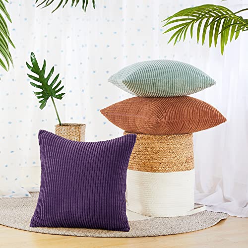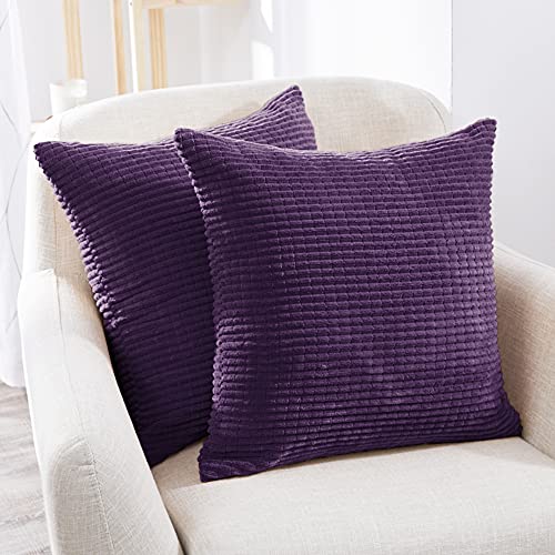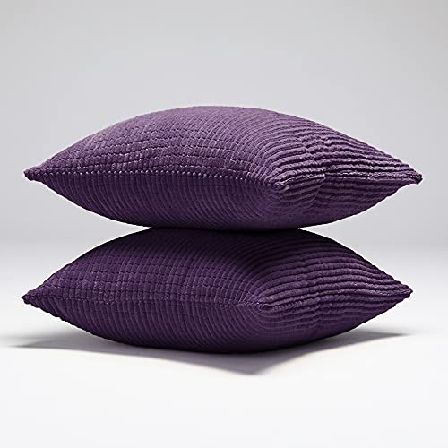 Deconovo Kissenbezug Kissen Kordsamt Kissenbezüge Kissenhülle Dekokissen mit Verstecktem Reißverschluss für Sofa Schlafzimmer, 55×55 cm, Royal Purple, 2er Set