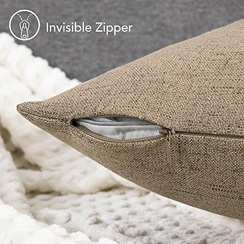 Deconovo Kissenbezug Leinen Optik Kissenhülle Kissenbezüge mit Verstecktem Reißverschluss Sofa Zierkissenhülle, 65×65 cm, Taupe, 2er Set