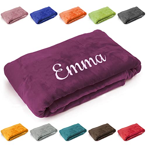 Deitert Kuscheldecke mit Namen oder Wunschtext Bestickt, 200cm x 150cm, extra weiche und gemütliche Sofadecke/Wohndecke, hochwertiges Fleece, personalisiertes Geschenk (Beere)