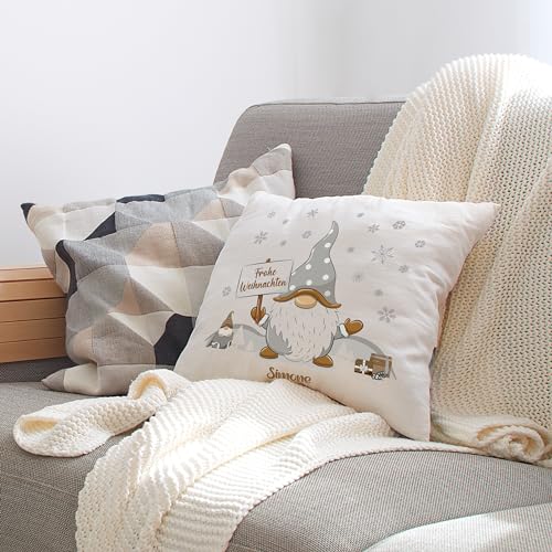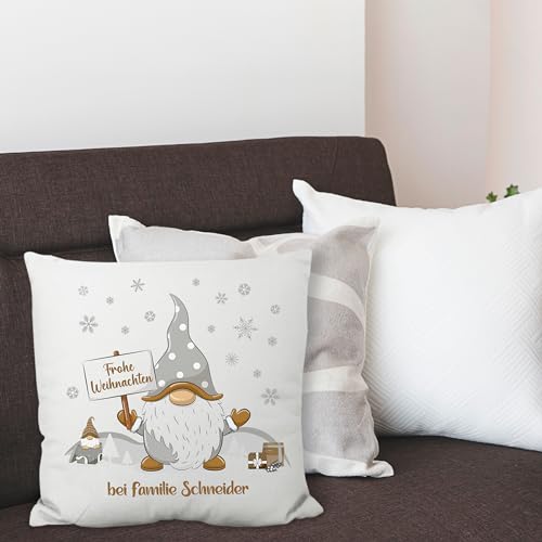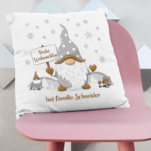 Deko-Kissen personalisiert mit Wunschtext „Frohe Weihnachten“ – mit Gold-Wichtel-Motiv – 40x40cm, inkl. Kissen-Füllung | Zierkissen Weihnachtskissen Weihnachts-Geschenk (Strukturiertes Kissen)