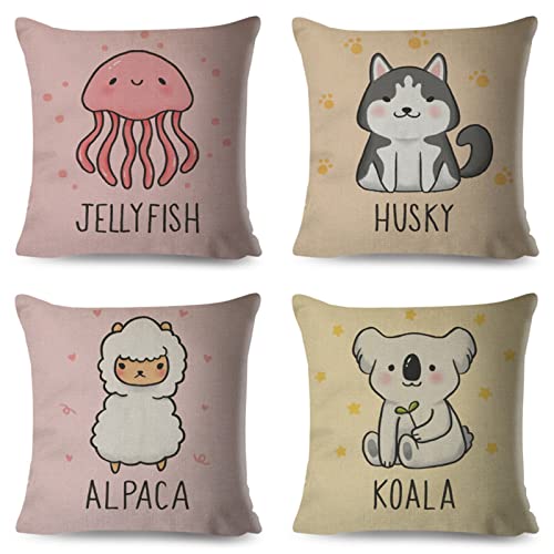 🎈【MATERIAL DER KISSENBEZÜGE】 Dickes Upgrade. Doppelseitiger Musterdruck. Kissenbezüge bestehen aus hochwertigem Baumwollleinen. 4 PCS sind im Paket enthalten. Es ist kein eigenartiger Geruch, bequem, atmungsaktiv, langlebig und stilvoll, Kissen für alle Jahreszeiten entsprechend.
