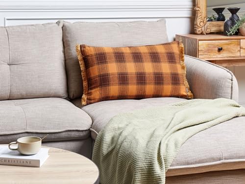 Rechteckiges Zierkissen mit dekorativen Fransen und kariertem Muster