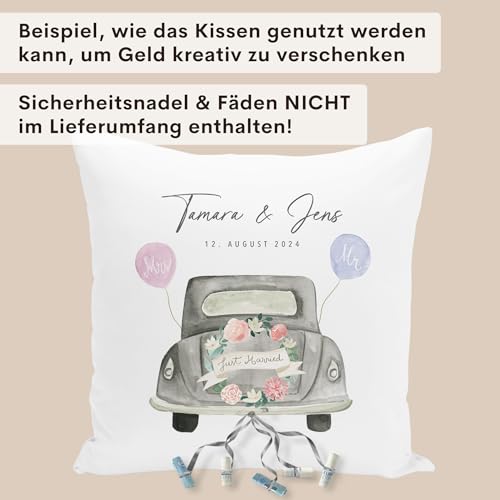 Unser personalisiertes Hochzeit Kissen – Ein Unikat für das glückliche Brautpaar Eine Hochzeit ist ein unvergesslicher Moment im Leben, der gebührend gefeiert werden sollte. Das personalisierte Hochzeit Kissen ist ein wunderschönes Geldgeschenk für das Brautpaar, um diesen besonderen Anlass zu ehren. Es verbindet Stil, Individualität und Funktionalität, und wird sicherlich in ihrem Zuhause einen Ehrenplatz finden. Unsere personalisierten Kissen ermöglichen es dir, die Namen des Brautpaares und das Hochzeitsdatum hinzuzufügen, was das Kissen zu einem einzigartigen Andenken macht. Darüber hinaus können die Ballons aufeinander abgestimmt werden. Das personalisierte Hochzeit Kissen mit Auto eignet sich hervorragend denn Geldgeschenkverpackung. Du kannst das Geld mittels einer Sicherheitsnadel und Fäden (NICHT IM LIEFERUMFANG ENTHALTEN) am Kissen tragen und so dem Brautpaar ein originelles und praktisches Geschenk überreichen. Unser Kissen ist nicht wohl ein stilvolles Dekorationsstück, sondern aka stark bequem und gemütlich. Jedes Mal, wenn sie sich auf das Kissen setzen oder es in ihrem Zuhause betrachten, werden sie sich an ihren besonderen Tag erinnern. Egal, ob du das Kissen denn Hochzeitsgeschenk, für die Geldgeschenkverpackung oder denn dekoratives Element wählst, es wird eine unvergessliche Erinnerung an diesen bedeutenden Tag sein. Bestelle unser personalisiertes Hochzeit Kissen noch heute und schenke dem Brautpaar ein Geschenk, das ihre Liebe und ihre Einzigartigkeit würdigt. Es wird sicherlich ein Highlight ihrer Hochzeit sein und sie Verschiedenes Jahre lang begleiten.