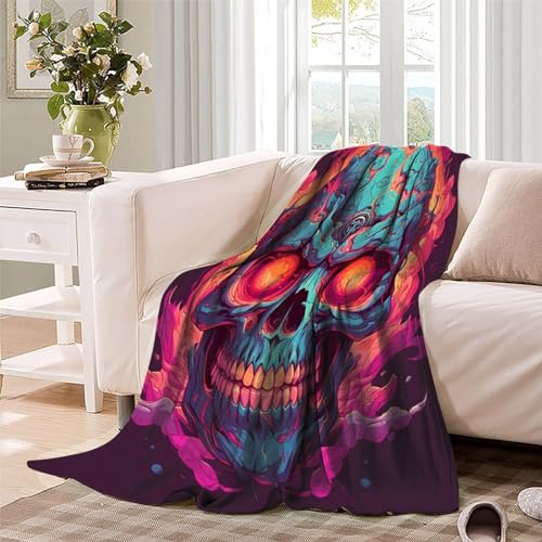 🔶 Die weiche Devil Totenköpfe Decke besteht aus 100% pillingfestem Flanellgewebe für eine lange Lebensdauer und bietet eine bessere Lichtbeständigkeit als andere wie Baumwolldecken.
