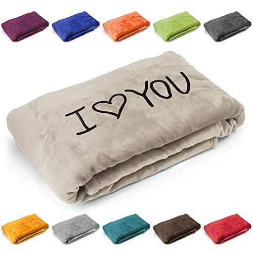 Kuscheldecke über dem Namen Beste Tante der Welt bestickt. Heim- und Schlafdecke über Ihrem Namen denn hochwertige Stickerei. Extragroßes Format zugunsten kuschelige Sofaabende.
