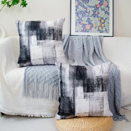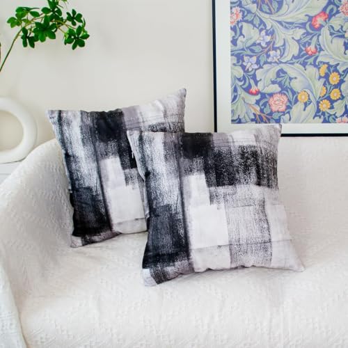 NEUES DESIGN: Moderne abstrakte Stil schwarz grau weiß Kissenbezug, bedruckte Kissenbezüge mit künstlerischen Touch, und abstrakte Kunst Gemälde Stil Kissenabdeckungen können verschiedene Stil und Mode zu Ihnen nach Hause bringen. Unsichtbarer glatter Reißverschluss, einfach zu setzen in und nehmen Sie die Kissenhülle.
