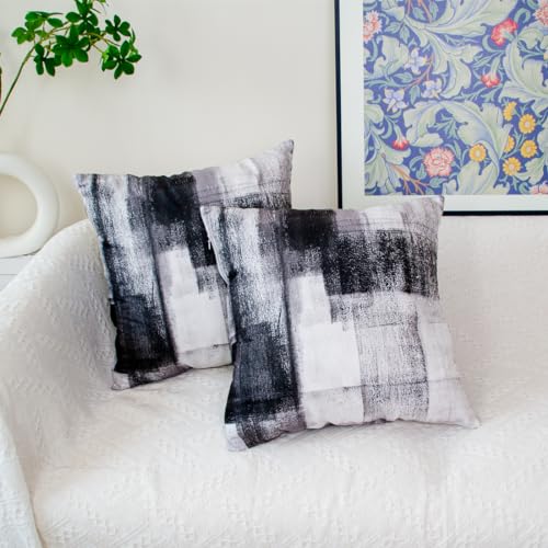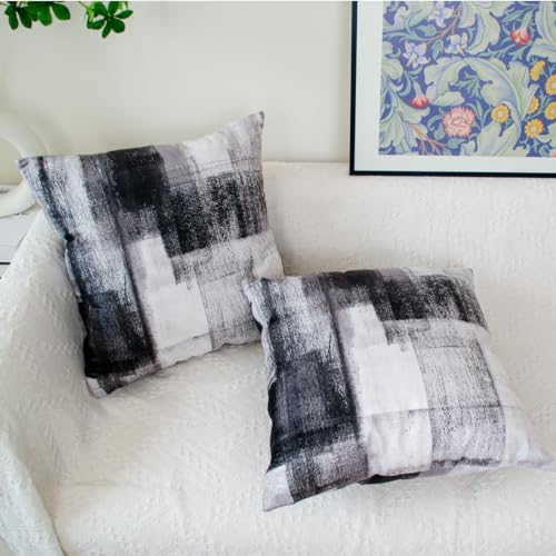 NEUES DESIGN: Moderne abstrakte Stil schwarz grau weiß Kissenbezug, bedruckte Kissenbezüge mit künstlerischen Touch, und abstrakte Kunst Gemälde Stil Kissenabdeckungen können verschiedene Stil und Mode zu Ihnen nach Hause bringen. Unsichtbarer glatter Reißverschluss, einfach zu setzen in und nehmen Sie die Kissenhülle.