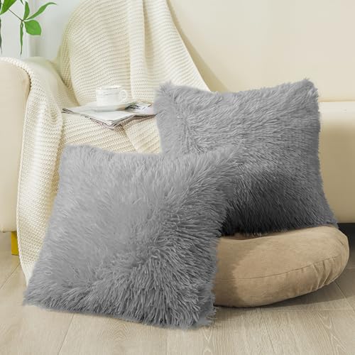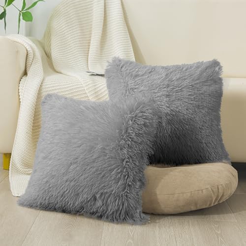 DJDEA Kissenbezüge 2er Set – Kuschelkissen Flauschig Kissen 50×50 Bezug – Künstlich Pelz Sofakissen – Dekorative Dekokissen – Kissen Flauschig Kissenbezug für Sofa 50×50 cm (Grau, 50 x 50cm)