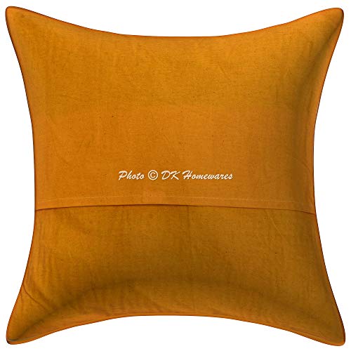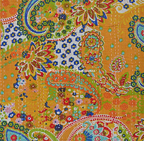 DK Homewares Dekorativ Couch Deko Kissenbezüge 40×40 cm Baumwolle Mangogelb Kantha Kissenbezüge Dekokissen Gedruckt Paisley Quadrat Bohemien Kissenhüllen – 2er-Set (nur Bezug)