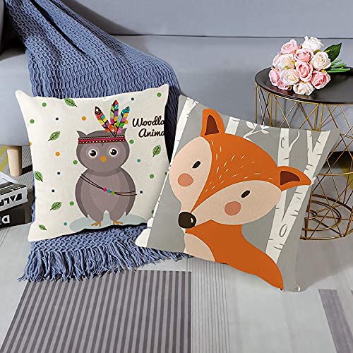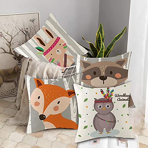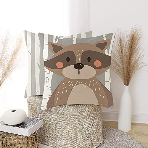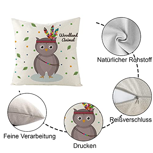 ►KISSENBEZÜGE SPEZIFIKATION & DESIGN◄ Jeder Kissenbezug misst 45×45 cm. Packung mit 4 Kissenhülle, freilich die Kissenbezüge (Kissen nicht im Lieferumfang enthalten), Unsichtbarer Reißverschluss an einer Seite, einfaches Einsetzen und Abmachen des Kissens, Versteckte Reißverschluss-Design macht Kissenbezüge schöner und kratzt Sie nicht, und Kissenbezüge haben reichere und Cartoon Tiere Hase Waschbär Fuchs Vöglein Muster.