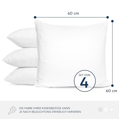 Dreamzie Kissenbezug 60×60 (4er Set) – 100% Jersey Baumwolle 150 g/qm Kissenbezüge – Weiß – Für Kissen 60 x 60 cm – Kissenhülle – Kissenbezug – Resistent und Hypoallergen – Zertifiziert Oeko-Tex