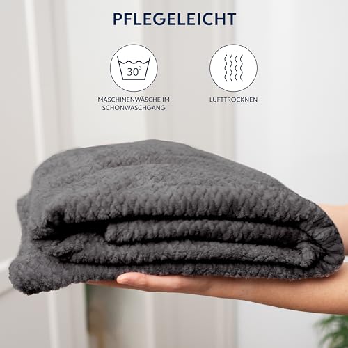 Pflegeleicht: Die Decke kann Daneben 30°C in der Waschmaschine gewaschen werden. Durch des pflegeleichten Materials trocknet die Mikrofaser-Fleecedecke alleinig schnell.