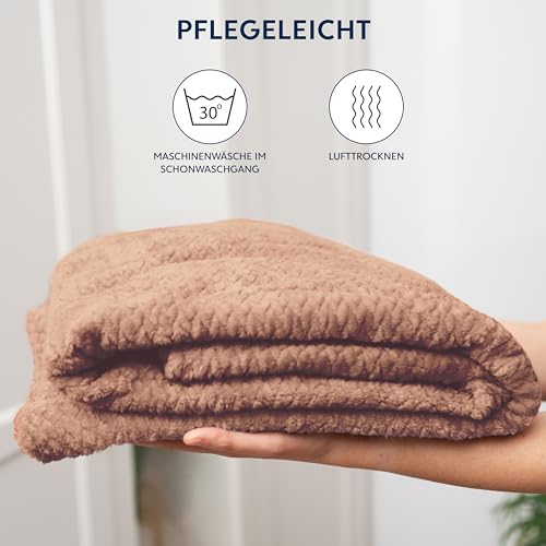 Pflegeleicht: Die Decke kann Daneben 30°C in der Waschmaschine gewaschen werden. In Anbetracht des pflegeleichten Materials trocknet die Mikrofaser-Fleecedecke einzig schnell.