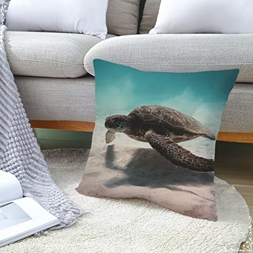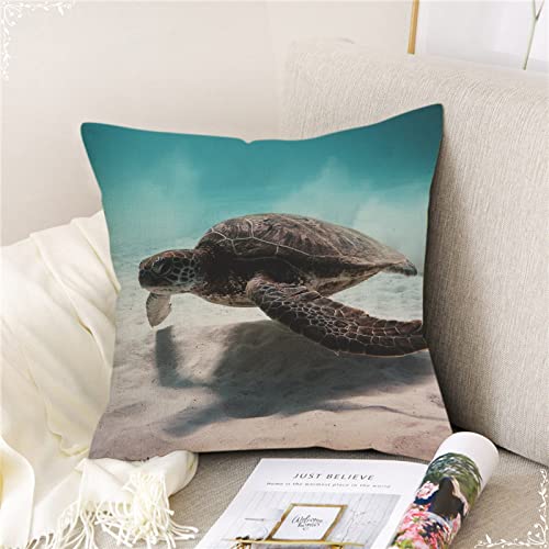 Dsnyu 4pcs Zierkissenbezüge Vintage, Schildkröten Dekokissen 50×50, Blau Beige Leinen Kissenbezüge für Balkon Terrassen