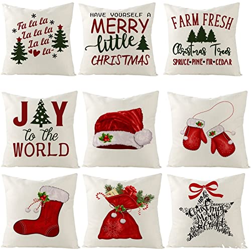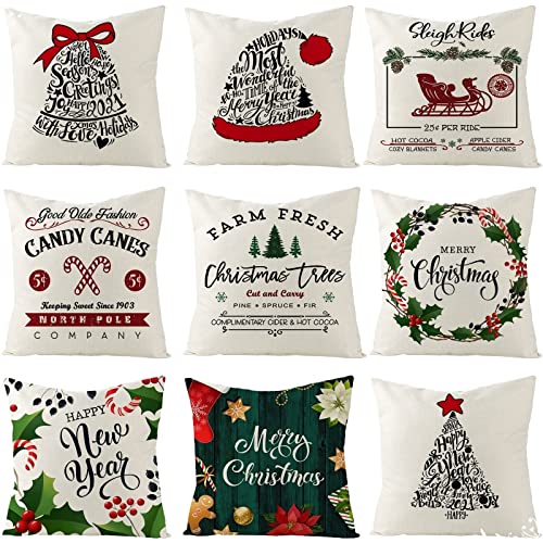 🎅 HOCHWERTIGE MATERIALIEN: Diese Weihnachts-Kissenbezüge sind jedweder Leinen gefertigt, die glatt und faltenfrei ist, kann sie die Form des Kissens beibehalten. atmungsaktiv und strapazierfähig und bietet Ihnen genügend Komfort.