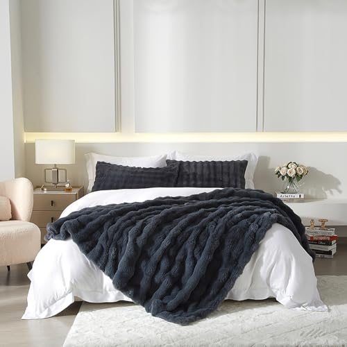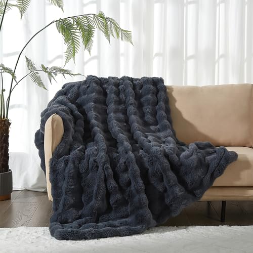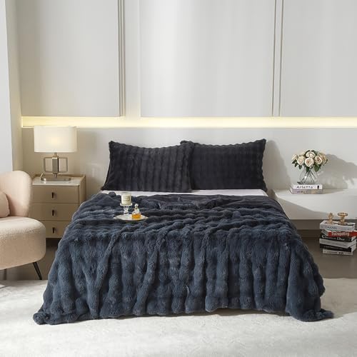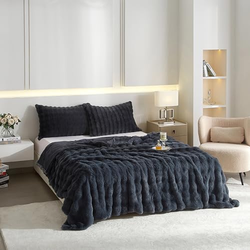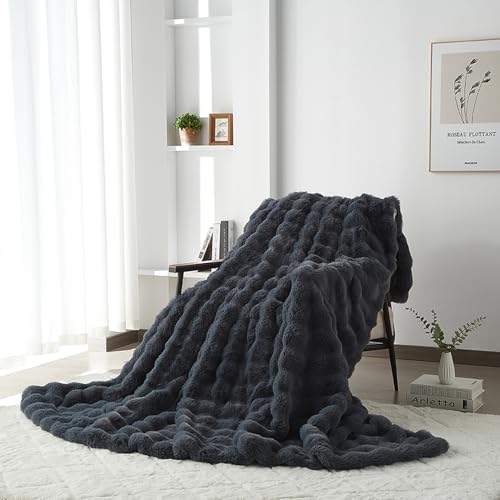 【Perfekte Geschenk】: weich und angenehm zu berühren wie Kaschmir, Der Flauschiger Plüsch warme und kuschelige Kaninchenfell kuscheldecke flauschig ist ein wirksamer Abschirmung gegen die Winterkälte und somit das perfekte Wintergeschenk für Familie und Freunde.