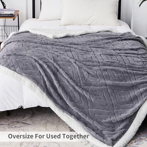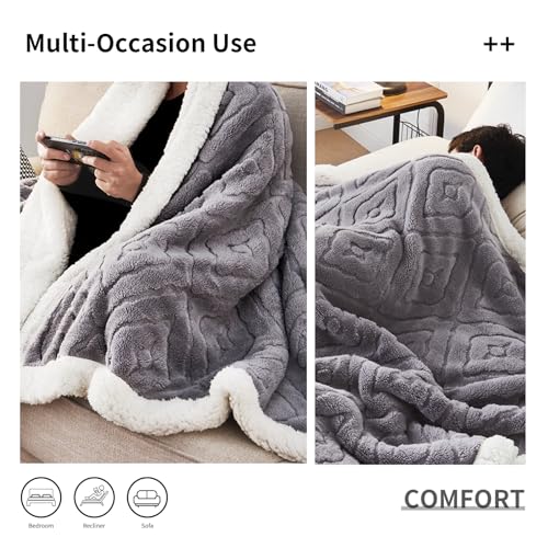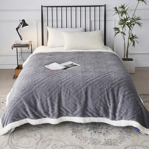 EAQ Kuscheldecke Flauschig Sherpa Flanell Sofaüberwurf Decke Sofadecke Doppelgesicht Extra Weich Wohnzimmer Sofaüberwurf Couchdecke für Bett Sofa (grau, 130x150cm)