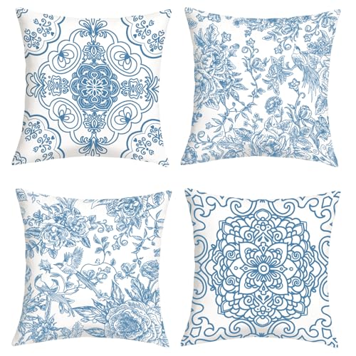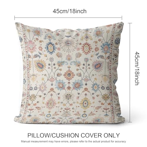 ECZOIL 2er Set Boho Kissenbezüge 45×45 cm,Böhmische Blumen Dekorative Kissenhülle Flachs 18×18 Inch Doppelseitiger Druck Dekorative Kissenbezug für Wohnzimmer Sofa Schlafzimmer-Floral Cremefarben