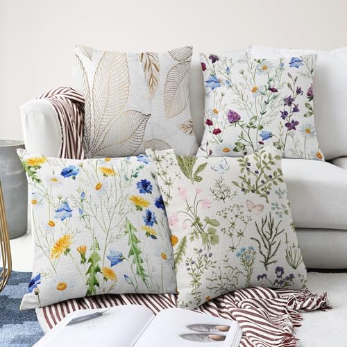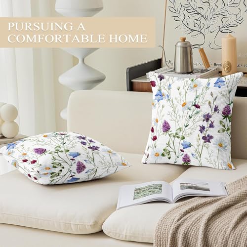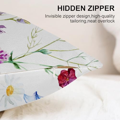 ECZOIL 2er Set Kissenbezug für 45×45 cm, Bunt Pflanzen Blumen Muster Kopfkissenbezug mit Reißverschluss, für Wohnzimmer Sofa Schlafzimmer-Lila Gänseblümchen