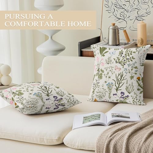 ECZOIL 2er Set Kissenbezug für 45×45 cm, Bunt Pflanzen Blumen Muster Kopfkissenbezug mit Reißverschluss, für Wohnzimmer Sofa Schlafzimmer-Vintage Blume