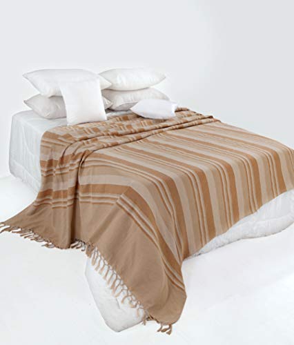 EHC, 250 x 250 cm, gestreift, aus Baumwolle, groß, 3 oder 4-Sitzer, Sofa-Überwurf für King-Size-Bett braun