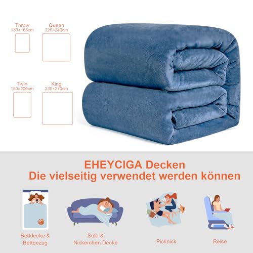 EHEYCIGA Kuscheldecke flauschig, weiche warme Fleecedecke 230×270 als Decke Sofa, Wohndecke oder Couchdecke überwurf, GrauBlau