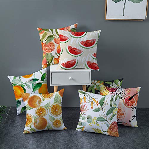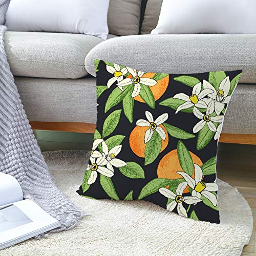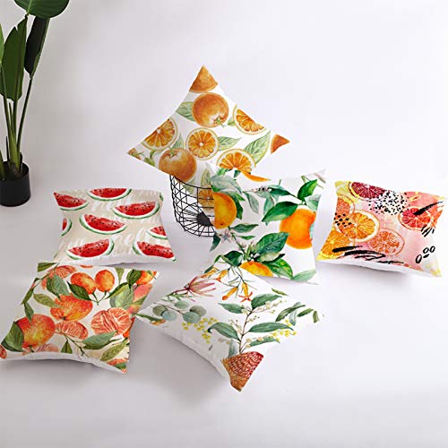 EHOMERY Kissenbezüge Kuschelig Kissenbezug Wasserdicht Zitronenblumenblätter Samt Zierkissenbezüge Outdoor Wetterfest Dekokissen Wohnzimmer Sofa Dekoration Weiß, Gelb, Orange 16X16 Inches