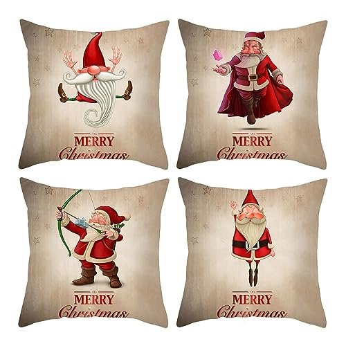 EHOMERY Kissenbezüge Uni Kissenhülle Jungs Polyester Kissenbezüge Jugendzimmer Kissenbezug Dekokissen Weihnachtsmann Zierkissenbezüge Sofadekoration Rotbraun 45x45cm, 4Pcs