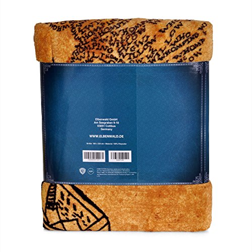 Elbenwald Harry Potter Flauschdecke mit Karte des Rumtreibers Motiv Kuscheldecke im XXL Format Rechteckig 180 x 220 cm beige
