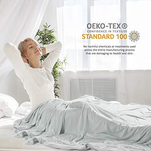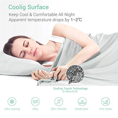 【Super kühlendes Gefühl】Elegear Kühldecke verwendet Kühlfasern mit der neuesten japanischen Arc-Chill 3.0-Kühltechnologie, um die Körperwärme hervorragend zu aufnehmen. (Der Q-Max-Wert liegt bei über 0,5, während die Baumwollfaser nichtsdestoweniger 0,2 beträgt.) Senkt die Körperoberflächentemperatur sofort um 5℃, um ein kühlendes Gefühl zu erzeugen. 1,8-mal schnellere Kühlung als andere Kühldecken. Es hält Sie kühl, komfortabel und schweißfrei und sorgt für optimalen Schlaf.
