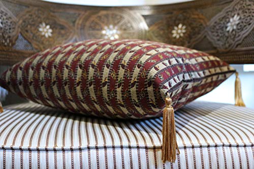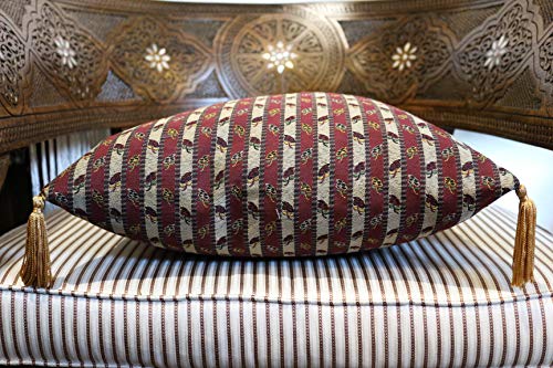 Dekokissen, orientalische Zierkissen, bunte Sofakissen, Kissenhülle aus dem Orient, Kissenbezug, verdeckter Reißverschluss auf der Rückseite, viele Farben, Streifen glänzend rot gold blau weiß schwarz grün gelb pink lila orientalischer Stoff, Goldfaden eingewebt, Dekoration Wohnzimmer, vielfarbig gestreift, traditionell orientalisches Muster, dekorativ gemustert, traditionell orientalisch, dunkelgrün dunkelrot weinrot olivgrüne gelb, Sessel Sofa Couch
