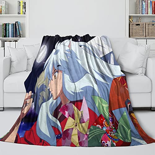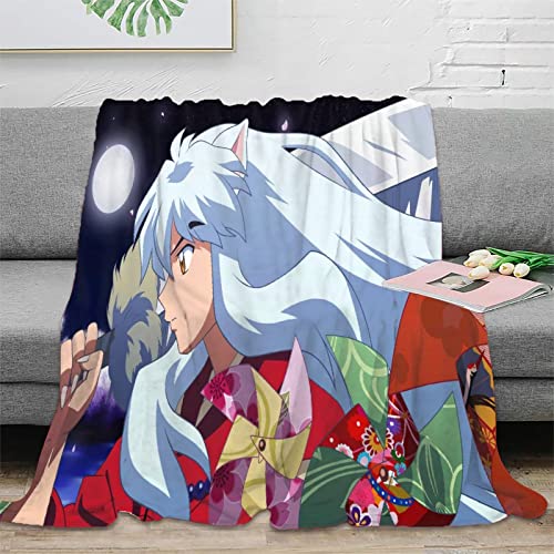 ELGISI Inuyasha Kuscheldecken Comics 3D Drucken Decke Flanell Flauschige Decke Kuschelige Wohndecke Sofadecke Reisedecke Vielseitig Einsetzbar Decke 60x80inch(150x200cm)