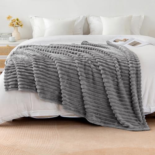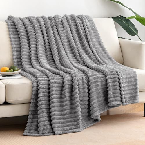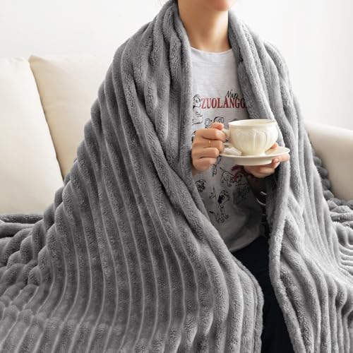 EMEMA Kuscheldecke Flauschig Decke Fleecedecke Wohndecken Couchdecke Flauschig Überwurf Mikrofaser Tagesdecke Sofadecke Blanket Für Bett Sofa Schlafzimmer Büro 125×150 cm Grau