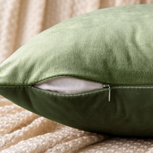 EMEMA Samt Kissenbezug Kissenhülle 40×40 cm Dekorative Dekokissen Matcha Grün Sofakissen Lendenkissen Wurfkissenbezug mit Verstecktem Reißverschluss Schlafzimmer Sofa 2er Set