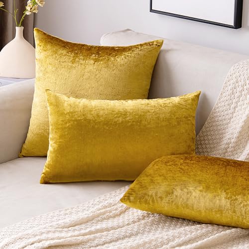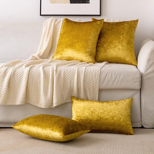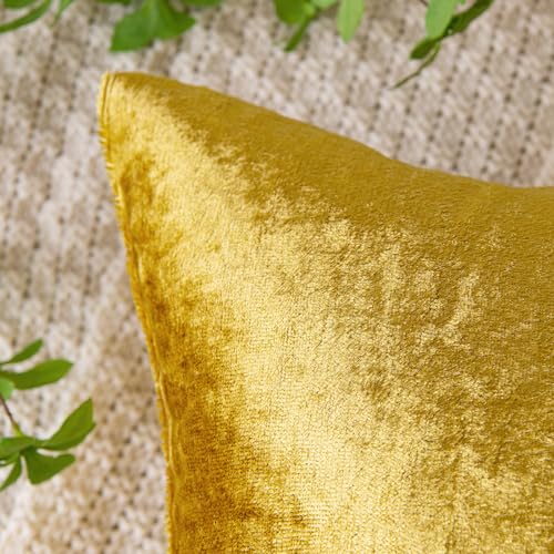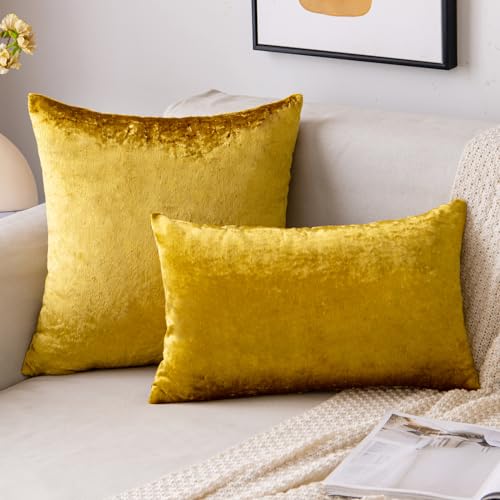 EMEMA Samt Kissenbezug Kissenhülle Dekorative Dekokissen Sofakissen Lendenkissen Wurfkissenbezug mit Verstecktem Reißverschluss Schlafzimmer Sofa 2er Set 40×60 cm Golden Luxuriös