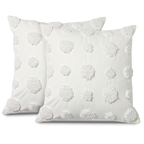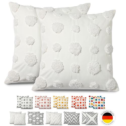 Emilie-Textil Boho Zierkissenbezug aus 100% Baumwolle, Deko Kissenbezug, Kissenhülle verschiedenen Mustern (Weiße Punkte, 40X40)