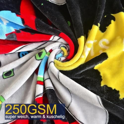 Hohe Qualität des Stoffs: Mit einem Gewicht von 280g/m² ist die Decke etwas dicker wie die meisten Anderen, die im Kontrast dazu 260g/m² haben. Dank eines neuen Herstellungsverfahrens ist es gelungen, die Decke etwas dicker zu machen, ohne die Leuchtkraft der Motive zu beeinträchtigen. Obwohl die Decke etwas dicker ist, bleibt es eher eine leichte Decke.