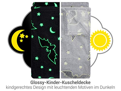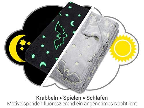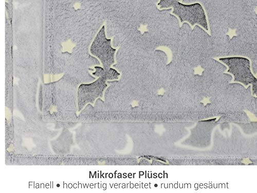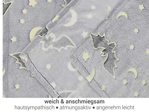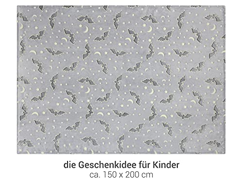 Lieferumfang: 1 Schritt – leuchtende Kuscheldecke ca. 150 x 200 cm, Fledermaus anthrazit