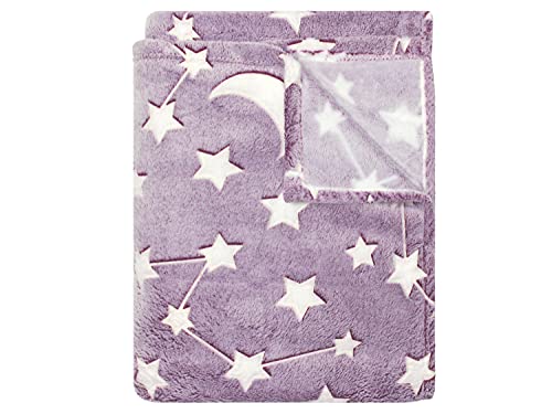 Lieferumfang: 1 Phase – leuchtende Kuscheldecke ca. 150 x 200 cm, Mond und Sterne beere