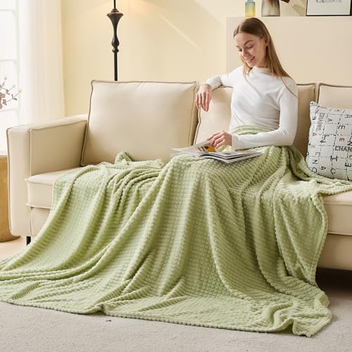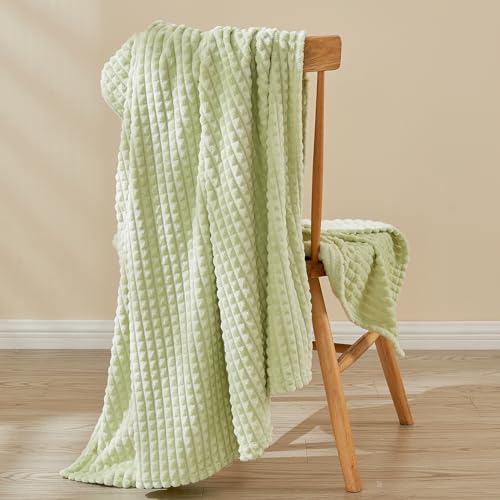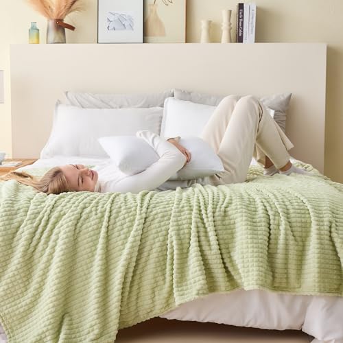 EMME Kuscheldecke Flauschige – 3D-Touch-Erlebnis 150x200cm Fleecedecke, Weiche Warme Wolldecke Überwurfdecke, Couchdecke, Decke für Sofa, Tagesdecke, Wohndecke, Avocado Grün