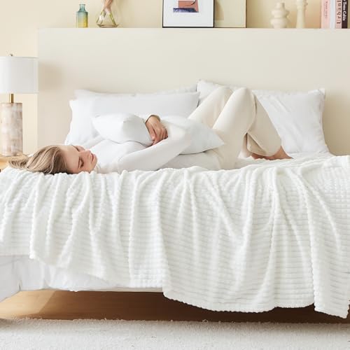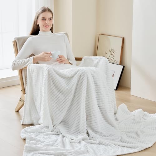 EMME Kuscheldecke Flauschige – 3D-Touch-Erlebnis 150x200cm Fleecedecke, Weiche Warme Wolldecke Überwurfdecke, Couchdecke, Decke für Sofa, Tagesdecke, Wohndecke, Weiß