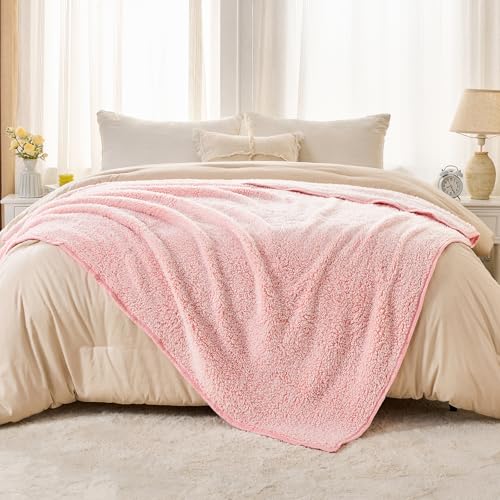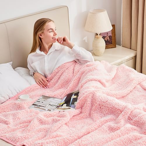 EMME Kuscheldecke Sherpa Decke Flauschig,Dicke und Elegant, Sofadecke Doppelgesicht Extra Weich, Warme Gemütliche Wendbare Flauschige Wohndecke Decke für Couch und Bett,Rosa,127×152 cm