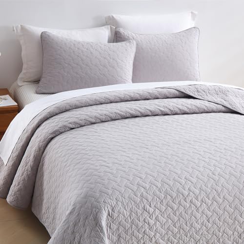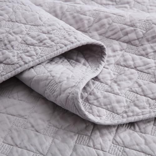 ENASAL Tagesdecken Bettuberwürf aus Baumwolle 220x240cm mit 2 Kissenbezüge für Doppelbett 230x250cm, 3 teilig Steppdecke Bettdecke weiche Ganzjahresdecke, Strickmuster, Grau