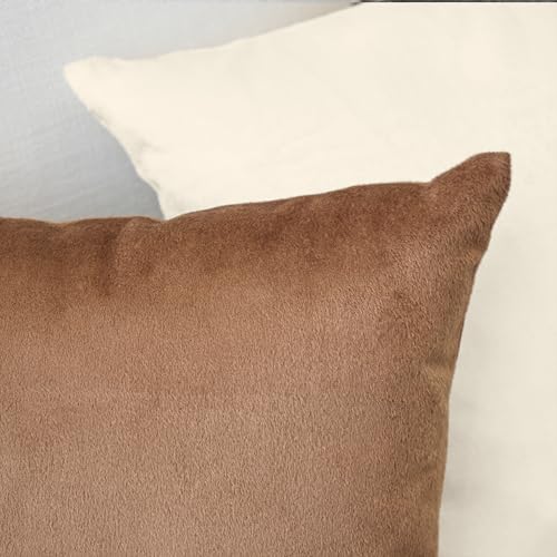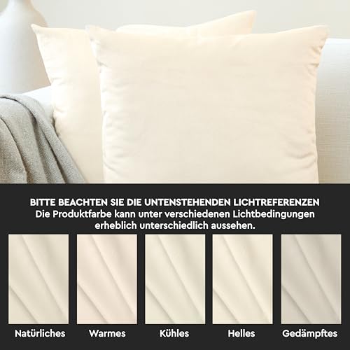 Encasa Homes Kissenbezüge aus Samt – 2er-Set (40×40 cm) – Creme- Uni gefärbt, weich & glatt, waschbar, quadratisch, großer Wurfkissenbezug für Couch, Sofa, Stuhl, Bett und Wohnbereich