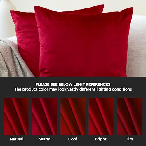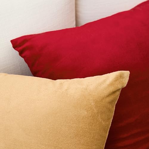 Encasa Homes Kissenbezüge aus Samt – 2er-Set (45×45 cm) – Rot- Uni gefärbt, weich & glatt, waschbar, quadratisch, großer Wurfkissenbezug für Couch, Sofa, Stuhl, Bett und Wohnbereich