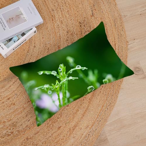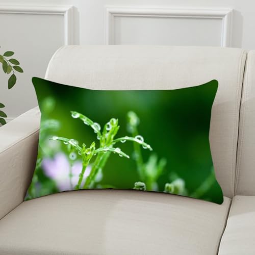 Epinki 30x50cm Zierkissenhülle, Dekokissen 1 Pcs mit Pflanzenthema Grün Blätter mit Tautropfen Muster Motiv Bequem Polyester für Zuhause Wohnzimmer Schlafzimmer Dekor, Polyester, Grün