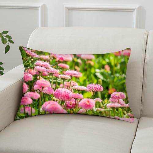 Epinki 30x50cm Zierkissenhülle, Dekokissen 1Pcs mit Rosa Blumen Muster Motiv Bequem Polyester für Sofa Schlafzimmer Büro Auto Dekor, Polyester, Rosa Grün