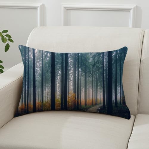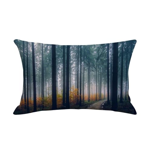 Epinki 30x50cm Zierkissenhülle, Weiche Dekokissen 1Pcs mit Baum und Straße Motiv Bequem Leinen für Zuhause Sofa, Schlafzimmer Dekor, Leinen, Braun Orange